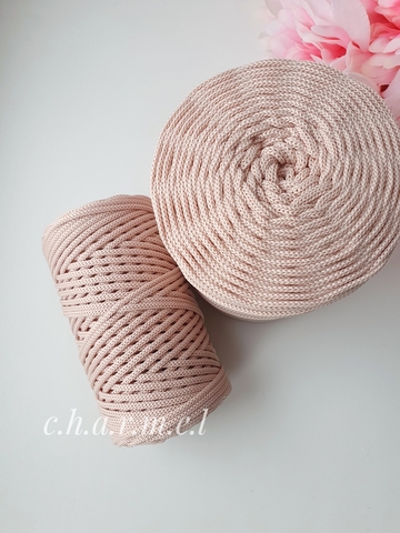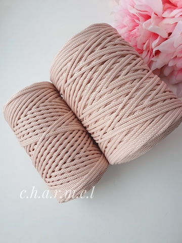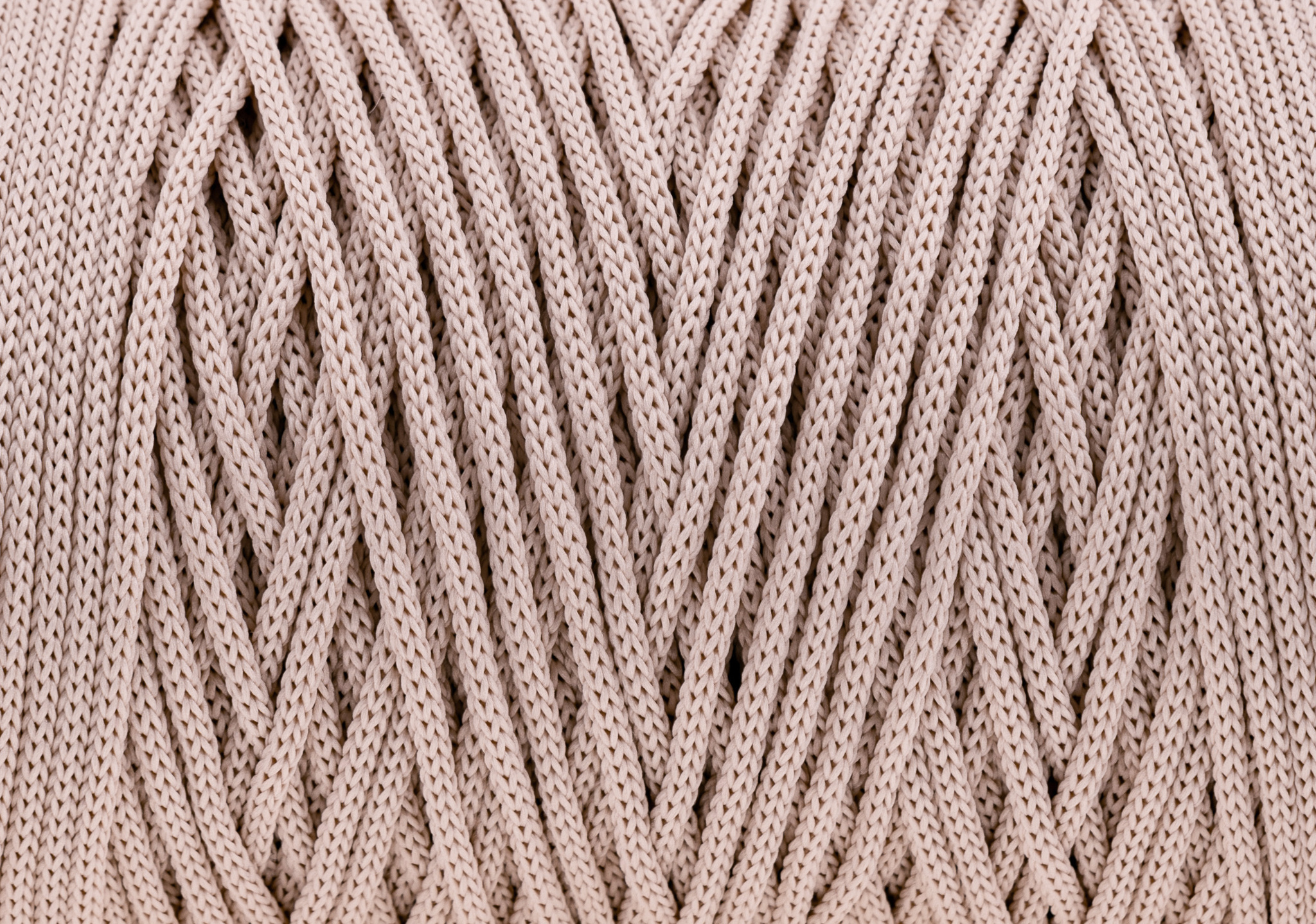 Полиэфирный шнур 4 мм Charmel приятный на ощупь, мягкий, фактурный, имеет круглое сечение, без сердечника. Это синтетический материал с небольшим блеском состоит из 100% полиэфира.