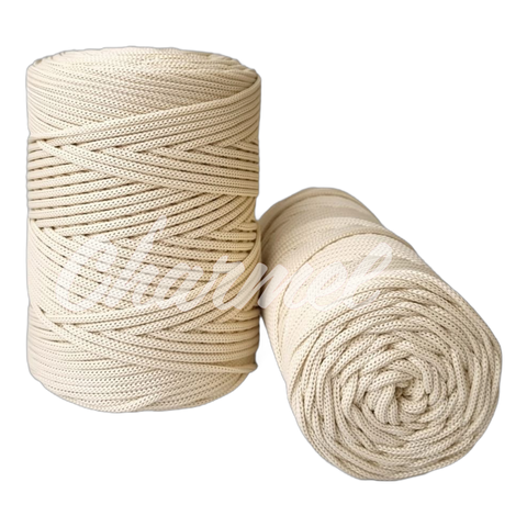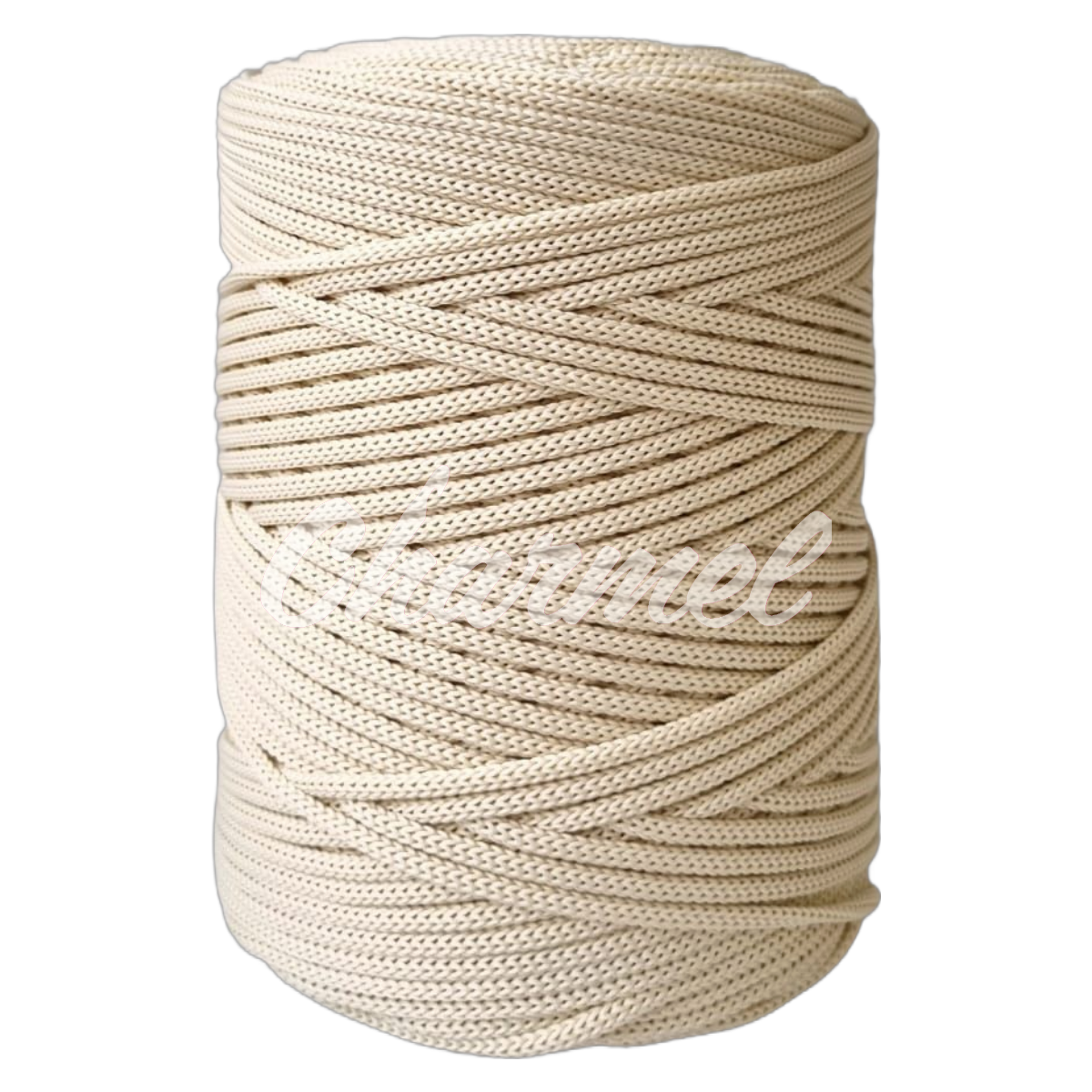 Полиэфирный шнур 4 мм Charmel приятный на ощупь, мягкий, фактурный, имеет круглое сечение, без сердечника. Это синтетический материал с небольшим блеском состоит из 100% полиэфира.